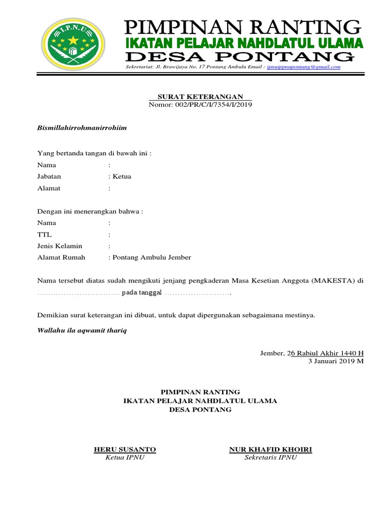 Mulai dari kepentingan pribadi sampai kepentingan yang bersifat umum. I p nu desa buaran dengan nomor : Contoh surat rekomendasi nu ranting : Contoh surat rekomendasi pengesahan ipnu. Istighotsah dan menindaklanjuti hasil musyawarah pleno pengurus nu.